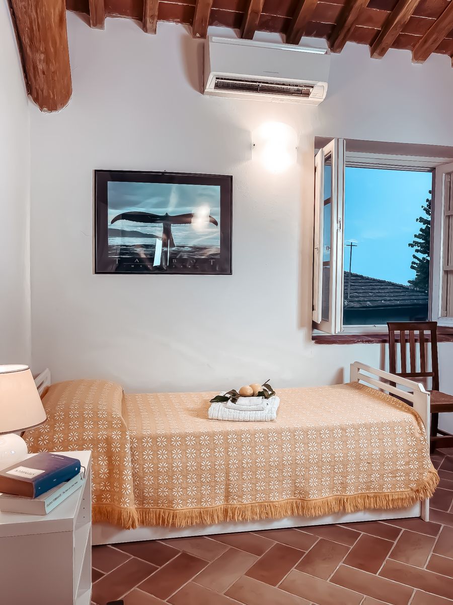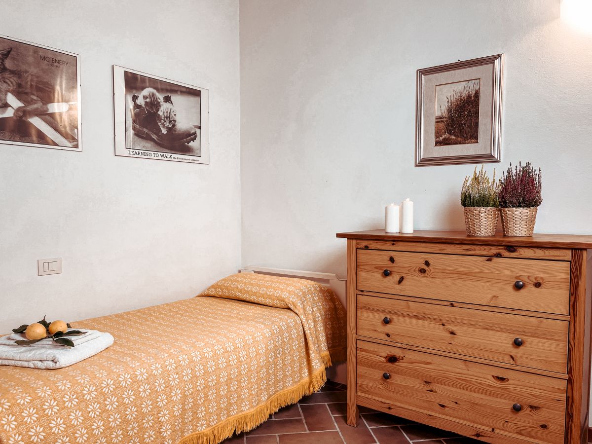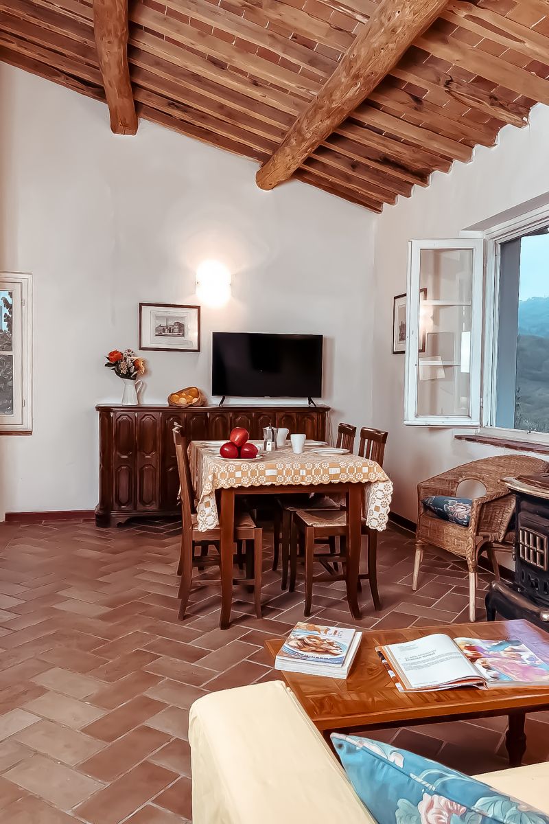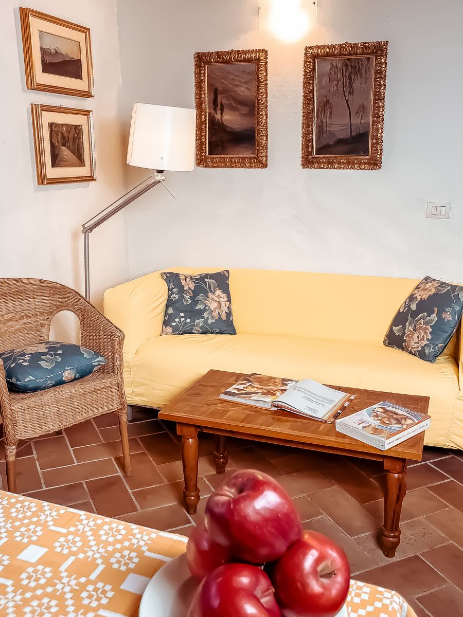 This light and airy apartment is located in a separate dependance near the swimming pool, offering a peaceful and convenient setting. Situated on the first floor, the apartment features an open-plan living room and kitchen, creating a spacious and sociable atmosphere.